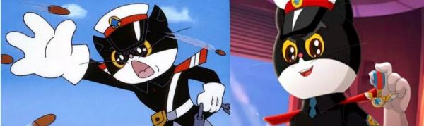 《黑猫警长》(1984年,左)与《黑猫警长之翡翠之星》(2015年,右)