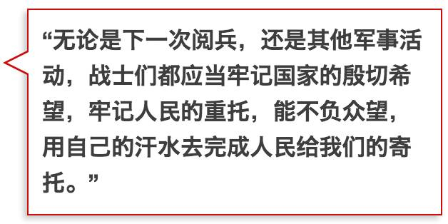 “所以我们不能光看热闹,还要看到整齐威风背后是组织机关和组织者,以及受阅战士的付出和汗水,以及阅兵背后所取得的成果。”