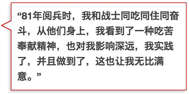 1981年,作为当时最年轻的副军长,他参加了802演习之后的华北大阅兵。当时,他与士兵同吃同住,参加训练,一起走分列式接受检阅。