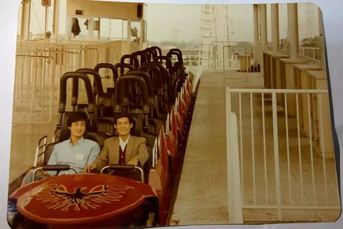 管理员们亲自乘坐云霄飞车,用两手挥舞、大声呼喊的方式展示“我们没事,不用怕!”,摄于1986年