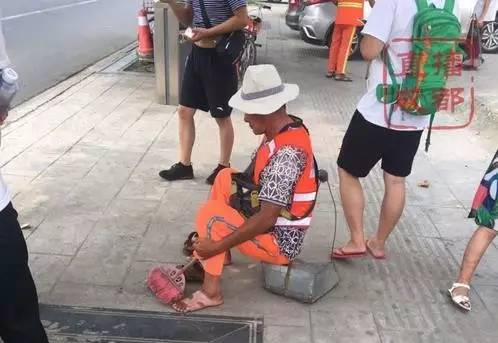 近日,有网友在成都动物园附近拍到一位环卫工大爷。借着工作间隙,他在树荫下休息。在烈日下工作的环卫工大爷完全被晒黑,当脱下凉鞋后,看着更让人心酸……