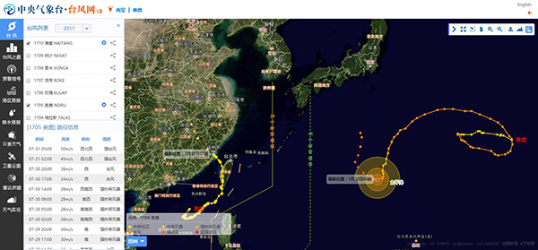 第7号台风“洛克”和第8号台风成为今年影响我国的首个双台风,从7月22日起,它们“携手”直扑广东、海南,中国气象局的官方网站上可以看到他们从生成到消亡的完整路径。