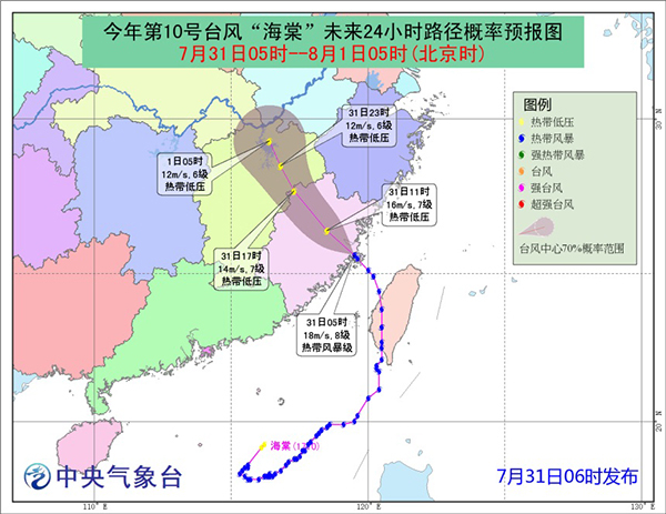 台风“海棠”路径概率预报图。 来源:中央气象台官网