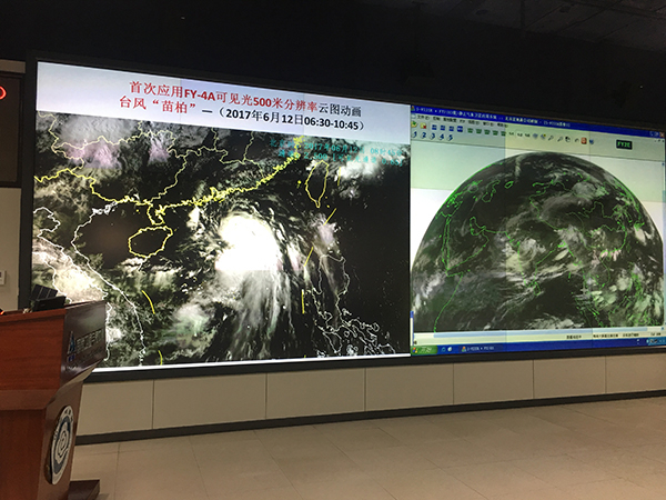 预报中心内的台风“苗柏”云图动画。 澎湃新闻记者 刁凡超 图