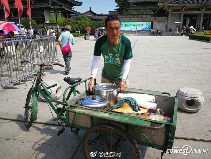 总有一些人,做着平凡的事,让人在夏日里感受到丝丝清凉。陕西历史博物馆大门口,有一位爱心市民——吴明军,从2015年夏天起,一到高温天,他就每天熬制出两大桶绿豆汤,给游客免费盛送,每天要送出三百多杯。