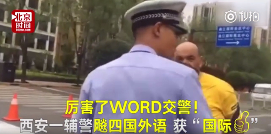 西安交警最近又“长脸”了。22日,某国际汽车拉力赛在西安收官,在收车仪式现场周边,西安交警雁塔大队的一名辅警,用流利的四国外语为外国友人指路,收获大量“国际赞”。该交警原是新东方英语老师,英语专业八级,还能用日语、法语、俄语对话。网友:厉害了,我的交警!