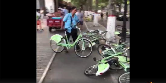 共享单车虽然为市民的出行带了便利,但乱停乱放的问题一直被人诟病。网友接连反映,街头的共享单车包围公交站台、占领地铁站出口、在街道上堆积如山……7月27日,一段“共享单车占停车位,收费员粗暴拖移扔路边”的视频再次引发市民关注。有人认为,收费员扔车的处理方式不妥当;也有人认为,不能怪收费员,共享单车把停车位占了,人家咋收费?