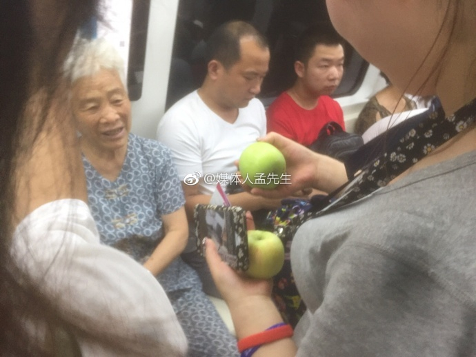 7月21日,西安地铁上发生感人一幕:一位女孩主动为一位老人让座,老人坐下后拿出包里的苹果坚持要送给她。女孩推辞,老人执着地说,“这是我家树上的,放心吃!”最终女孩收下苹果。网友:“尊老”的她,遇上了“爱幼”的她,真好!
