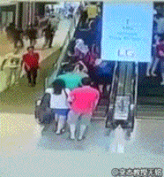 扶梯突然反转,电梯上的人瞬间滚落一地。