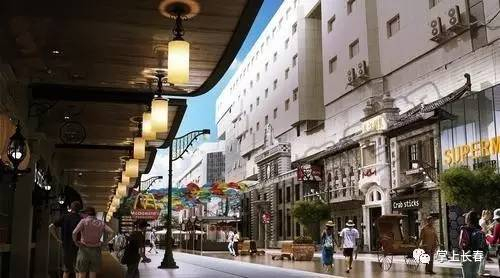 从西入口望去,曾立于此的高大“门脸”和主街半封闭的棚顶已拆除,自西向东穿过整条主街,可见两侧的建筑立面已全部翻新,棕、白、橙、红色搭配的一砖一瓦、还在运行的历史大钟,以及茶色玻璃传递出复古的气息,让人回想起老长江路的辉煌。建筑檐口、墙面、立柱、门窗的整体改造使墙面变脸,花窗花坛、遮阳窗、装饰提升了整体气质,古今中外六种不同风格的建筑相互穿插,带人们穿越历史。