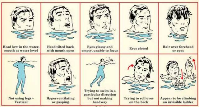 7、溺水最重要的迹象就是看起来不像溺水,他们看起来可能只是抬头在看天空、岸际、泳池边或码头。这个时候你要问:“你还好吗?”如果他们能回答,大概就没事。如果眼神涣散,可能只有不到半分钟的时间救他们一命。