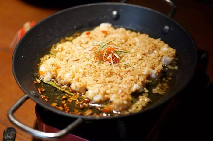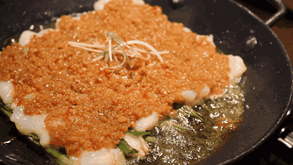 好评度爆灯,上过湖南卫视《味道》栏目的明星菜品,几乎每张桌都会点!新鲜的虾对半开边,韭菜打底,铺上蒜蓉,上桌开火现焖。蒜蓉够细够多,轻轻就焕发了虾的鲜甜,肥美多汁的虾肉,在唇齿之间流动,吃起来也很方便。