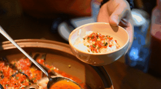 吃鱼头最不能错过的就是鱼唇。吃鱼唇时要快,一吸而入,停在口中,松软嫩滑,顺喉而下,妙不可言。除了鱼唇,鱼头部位的肉特别厚实,而且刺也不多,吃起来很方便。靠近鱼头的鱼肉口感紧致弹嫩,除了表面剁椒的鲜辣之外,还能吃出肉质本身的鲜甜。