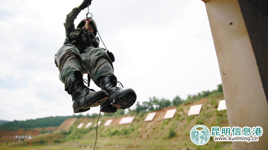 昆明信息港讯(昆明日报 记者李双双 王绍芬 罗昆娅) “预备,跃进!”一声令下,身着迷彩服、脸抹油彩的女兵们迅速占领射击阵地,先用自动步枪射击100米以外的氢氧靶,然后继续战术跃进,跃进过程中迅速将步枪换成手枪,跪射15米距离的瓷盘靶。这是7月25日上午,第75集团军某旅指挥通信连女子特战队的队员们在综合训练场进行训练时的场面。一个上午,女兵们进行了多种武器特种射击训练、攀登训练、心理意志训练、格斗擒拿训练及指挥通信枢纽开设训练。