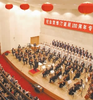图①:2003年7月20日,是湘籍人民音乐家贺绿汀诞辰100周年的日子,省委宣传部、省文化厅、省文联在长沙田汉大剧院联合举办纪念专场音乐会。张京明 摄