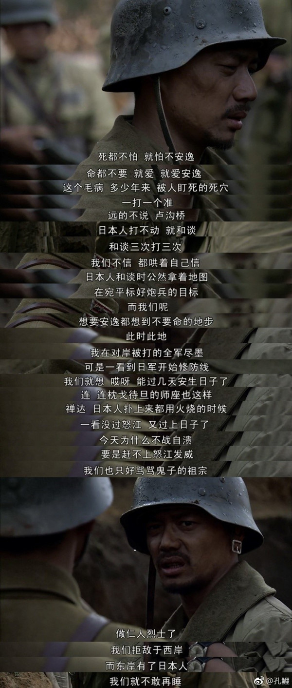 这不免让我想到《我的团长我的团》里的一段话。《我的团长我的团》虚构了滇西抗战中的一段故事,在这里,当国军和日军在怒江东西两岸对峙时,怒江是天险,一般日军打不过来。