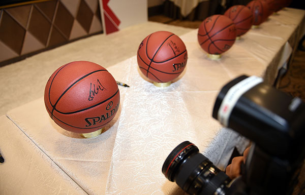 2017姚基金慈善赛上的签名篮球。东方IC 图