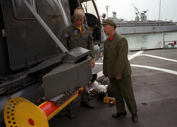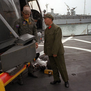 这是一张让人颇感心酸的照片。1980年,“中国航母之父”刘华清将军登上美军航空母舰。当时年逾六旬的老将军踮起脚尖,仔细认真地观摩着航母舰载设备的细节。刘华清在上世纪60年代就开始关注航母,但因技术、经费等方面的原因长时间未能如愿。几十年间,刘华清将军始终放不下心中的航母梦,做了大量的准备工作。2011年刘华清将军逝世。一年之后,中国第一艘航空母舰——“辽宁舰”正式交付海军。2017年4月,中国首艘自主建造的新航母001A型航空母舰下水。我们终于可以告慰30多年前那个略显单薄、翘首企盼的身影。