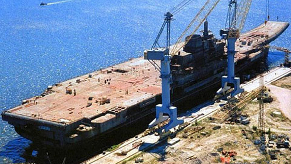 80年代中后期,“瓦良格”号在乌克兰建造时遭逢苏联解体,建造工程中断。1991年12月25日,苏联宣布解体时,“瓦良格”号已经建造完成了68%,乌克兰无力建造,于是决定拍卖。