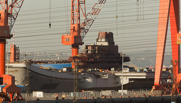 2009年9月9日,改造中的航母平台。 视觉中国 资料图
