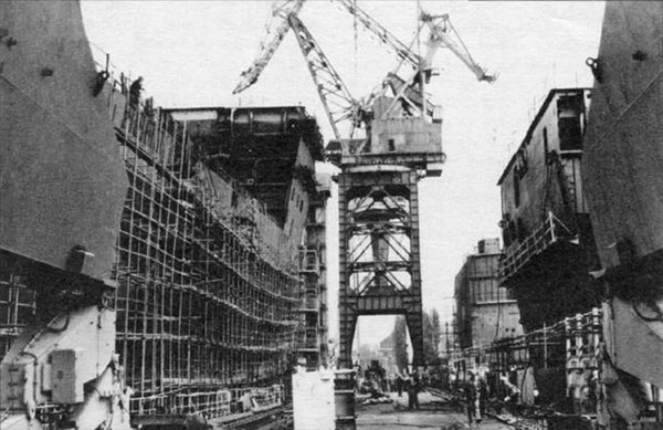在“瓦良格”号航母建造过程中,黑海造船厂大胆采用西方国家发明的总段模块化建造工艺,然后通过龙门吊一一送上船台,再在船台内进行诸如主发动机等大尺寸舰体分段合龙。