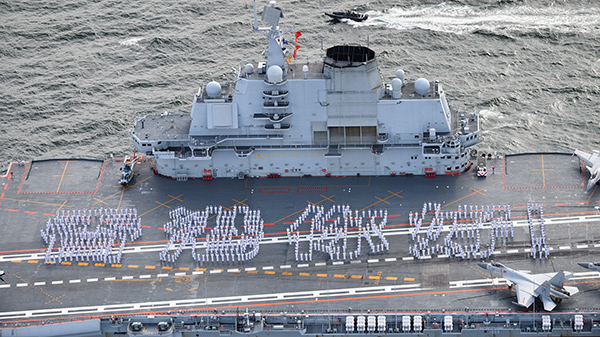 2017年7月7日上午,辽宁舰航母编队抵达香港,参加香港回归祖国暨中国人民解放军进驻香港20周年庆祝活动。700余名官兵在辽宁舰飞行甲板上列队排成“香港你好”字样,以海军独有的方式向香港市民表示亲切、诚挚问候。