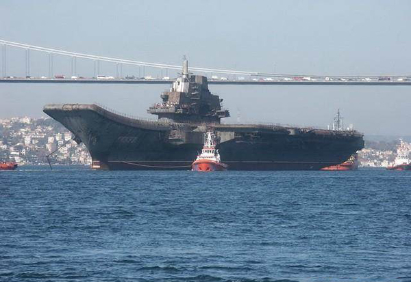 土耳其以船体过大、影响博斯普鲁斯海峡其它船只正常航行为理由,拒绝“瓦良格”号通过。一直到2001年7月中国政府介入后,才获进展。土耳其提出20项安全条件。包括:10亿美元的“风险保证金”、舰上必须安置发电机等。2001年11月1日,“瓦良格”号航母离开黑海造船厂后的第506天,终于通过了博斯普鲁斯海峡。