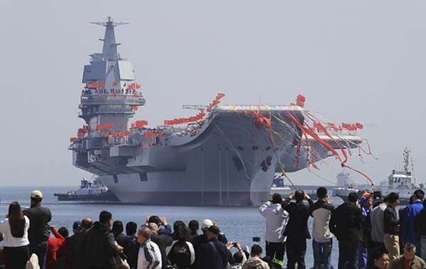 2017年4月26日,辽宁大连,中国首艘国产航母下水。 东方IC 资料图