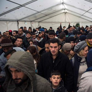 德国至今接收了超过100万难民,图为两年前刚抵达柏林的难民在等候向当局登记。