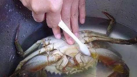 2、让梭子蟹在水中浸泡5—10分钟,充分沐浴一番。通过酒的刺激,将体内的脏物排出。