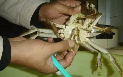 2、看腹脐。好梭蟹的腹脐一般呈浅红色,红色越多且肚脐结实蟹越肥满。