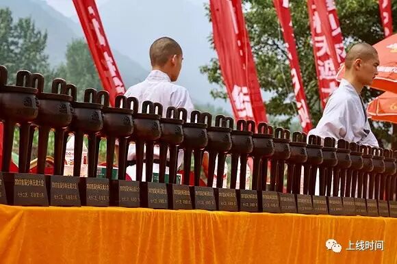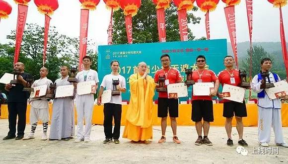 ▲释永信方丈为第一名选手颁奖。摄影:吕萌