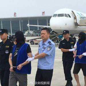 日前,包括台湾居民在内的多名电信诈骗嫌犯被逮捕回国。(图片来源:央视新闻微博)