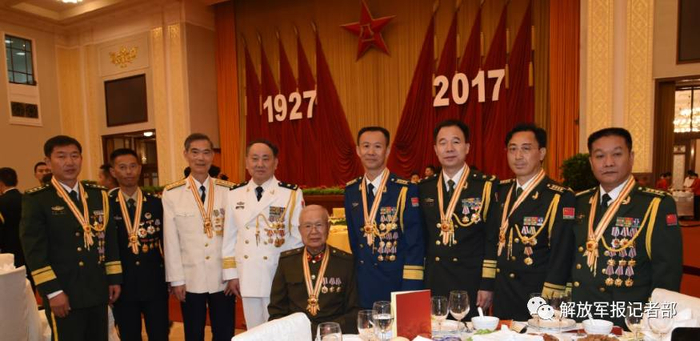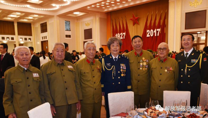 招待会上,习近平等向军队离退休老干部代表、“八一勋章”获得者、军队英雄模范代表、老战士代表敬酒致意,庆祝中国人民解放军建军90周年。