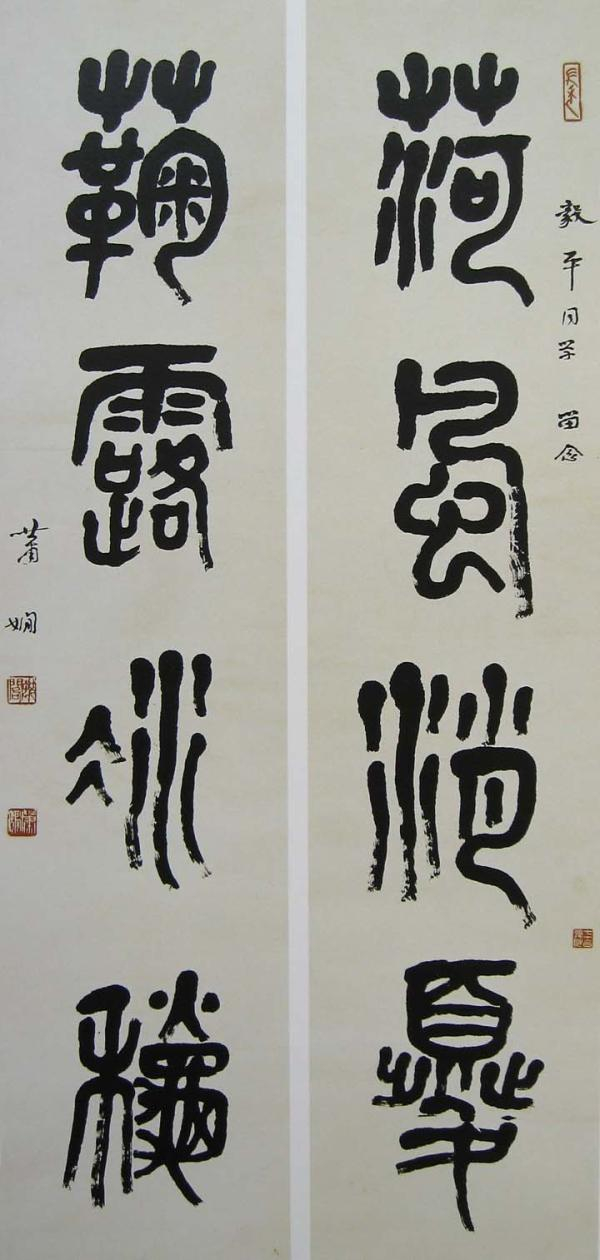 萧娴《篆书荷风菊露四言联》