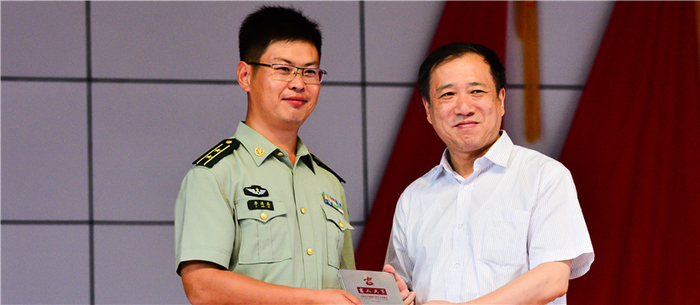 演出中,杨振斌向部队中的校友代表赠送了“吉人天下”校庆70周年文艺晚会纪念光碟。杨振斌表示,吉林大学历来高度关注国防事业和拥军工作,在建军90周年前夕,通过慰问演出方式,表达全校师生对英雄的中国人民解放军的崇高敬意和对边防官兵的亲切慰问,对于广大同学也是一次生动的爱国主义教育。学校将继续加强与驻吉部队的全面合作,共同做好军地共建、军民融合,着重培养学生的拥军意识和家国情怀。他号召全校师生向边防官兵能吃苦、能战斗、能奉献的高尚精神学习,共同为中国梦的实现做出更大贡献。