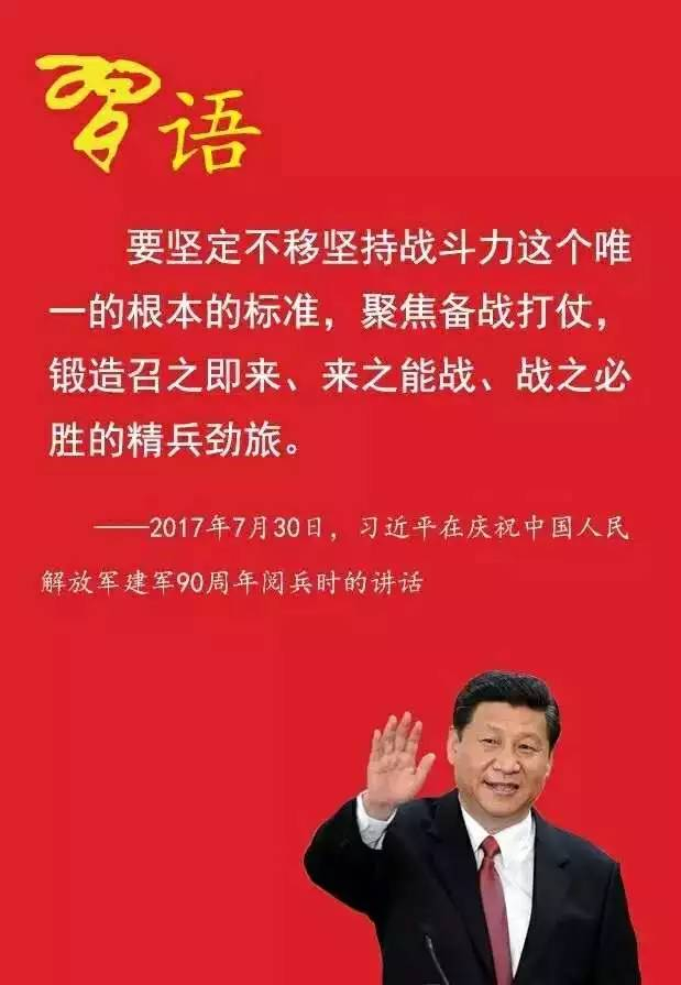 二是要时刻准备打仗,强化战斗队意识,坚持战斗力标准,集中精力研究军事、研究战争、研究打仗,做好军事行动各项准备,保持高度戒备状态,时刻听从党和人民召唤,忠实履行党和人民赋予的神圣使命。