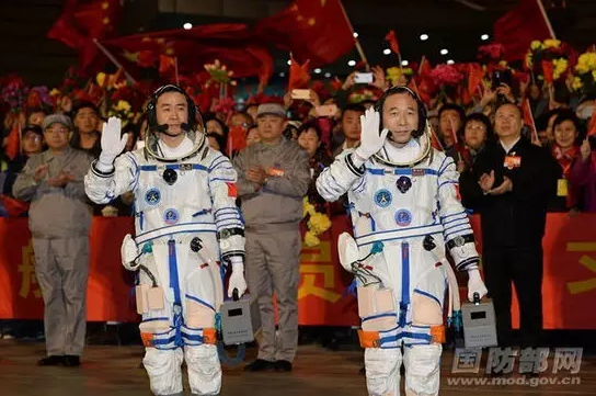 航天员景海鹏、陈冬准备出征。(图片来源:国防部网)