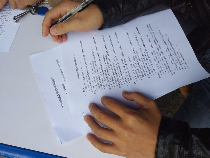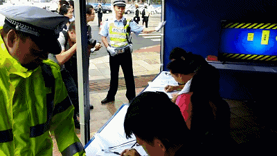 上午八点半,昆明市公安局交警支队七大队组织警力十余人,在广福路与前卫西路交叉路口岗亭设置学习点,一旦发现有非机动车违法行为,现场民警和协警就会将违法驾驶人带到学习点。让其接受普法宣传教育学习,内容包括:观看警示教育片、抄写交通安全法律法规、接受相关测试等。