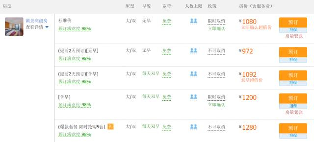 与某大型网络预订相比,周末含双早房价最低价逼近1100块!而这一次仅¥999,几乎是裸房价却可享受双早、双晚以及水上闯关活动。