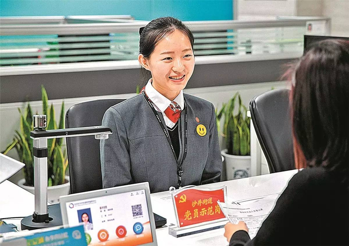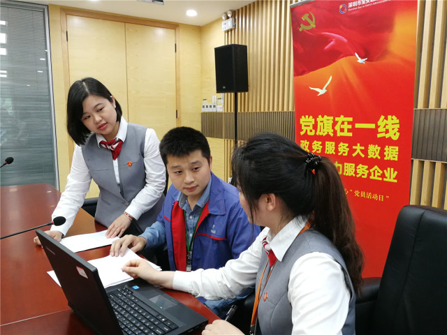 宝安区在窗口单位、服务行业等普遍开展党员示范岗活动。图为沙井街道政务服务中心工作人员面带微笑为市民提供政务服务(资料图 沙井街道提供)