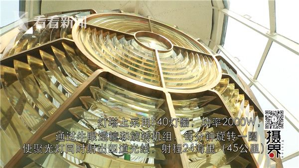 由铜铸小楼梯盘旋而上,在玻璃墙体中,四面巨大的牛眼透镜呈现眼前,每面透镜用8圈三菱形水晶玻璃拼装,直径1.84米;聚光灯把2千瓦卤素灯光聚集成光柱,每分钟旋转一圈,照射在方圆44.45海里的海面上。光芒之下,礁石岛屿无所遁形,前方航路畅行无阻,船员们称它为“夜海生命之光”。