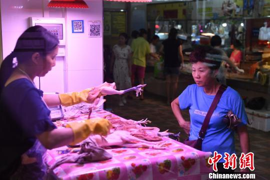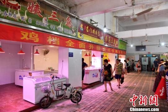 在广州荔湾区河沙村四社肉菜市场,记者看到档口已改造完成。该市场负责人称,从7月底开始,市场重新改造,目前可以正常出售生鲜鸡。