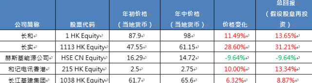 李嘉诚今年上半年回报如何?