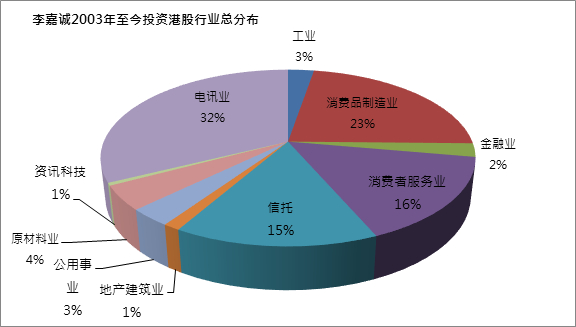 据统计,以李嘉诚入股公司价格来计算(未披露入股价格的以披露日期当日股价来计算),投资各个行业的权重如下:
