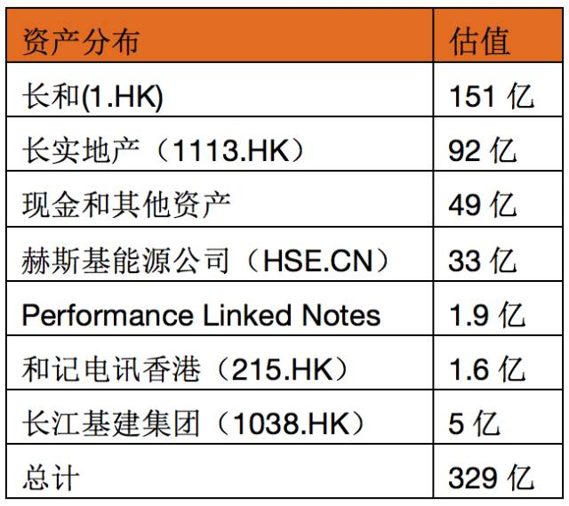 李嘉诚资产分布表(单位:美元)