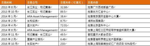 长和系近年重大(出售或减持)物业交易