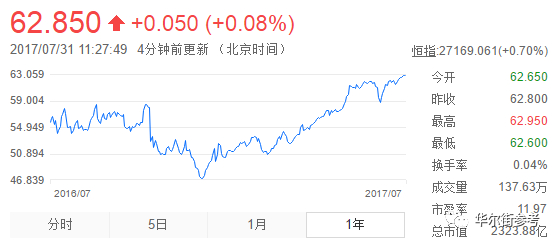 李嘉诚手持公司股票2017年上半年股价走势