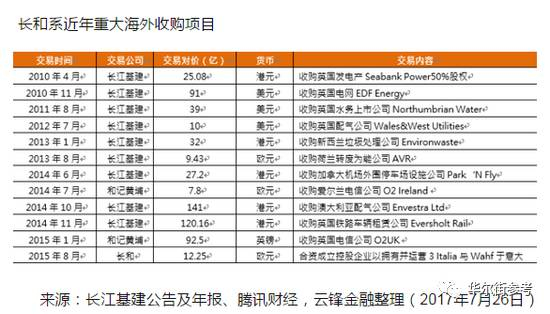 来源:长和系公司年报及公告,云锋金融整理(2017年7月26日)