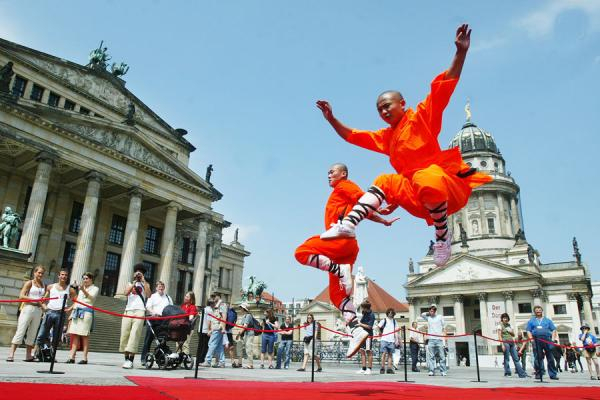 现在在嵩山少林寺里,有约25个外国的功夫学生,他们来自德国、澳大利亚、意大利、哥斯达黎加、西班牙……中国武术已经吸引了许多外国友人。